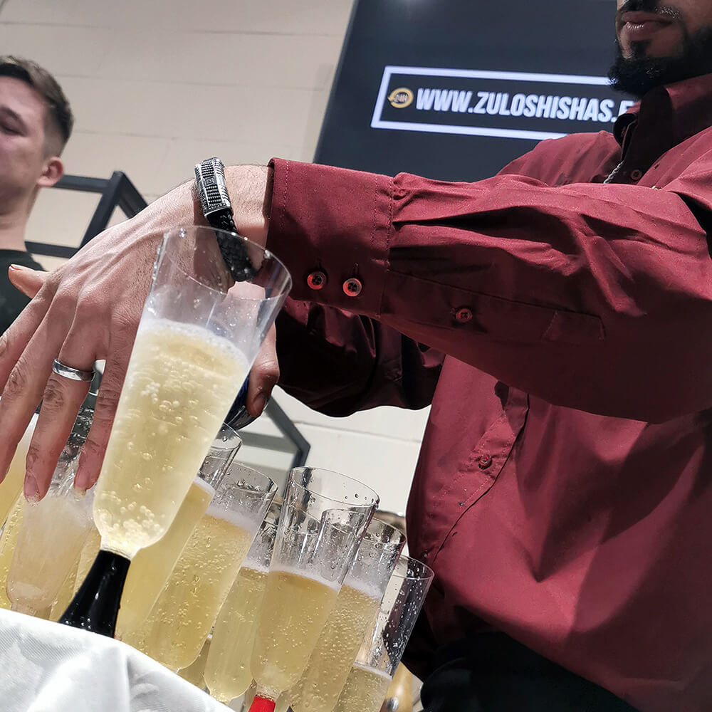 Y por supuesto, no pudo faltar el brindis. Así que, nuestro CEO Jesús Díaz se puso manos a la obra (más bien, se subió a las escaleras) y desde un lugar en el que pudiese veros la cara a todos vosotros, quiso dedicaros unas palabras de agradecimiento, para más tarde, junto a Marisa, nuestra Encargada de Tienda y Pedidos ( y mucho más 😉 ) brindó por este nuevo proyecto que, no sólo está ilusionando a quienes formamos parte desde dentro, sino a quienes consideramos parte fundamental de todo este englomerado, y que confiáis en nosotros para adquirir vuestras cachimbas y vapers, y todos los accesorios que necesitáis para vuestro día a día.